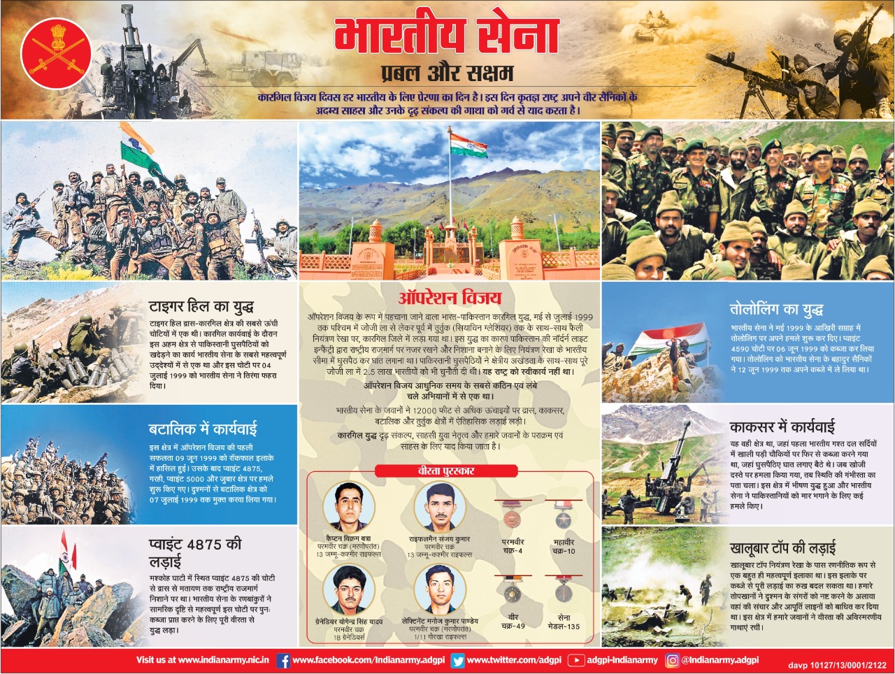 कारगिल विजय दिवस : आज द्रास में श्रद्धांजलि देंगे राष्ट्रपति : The Dainik Tribune from dainiktribuneimages.blob.core.windows.net इसे करगिल विजय दिवस के रूप में मनाया जाता है। इन टॉपिक्स पर और पढ़ें. वॉर मेमोरियल पर शहीदों को श्रद्धांजलि देने पहुंचे रक्षा मंत्री राजनाथ सिंह jul 26, 2019. Hariompanwar #kargilvijaydiwas #kargilwar #kavisammelan #hariompanwarpoem #indianarmy #sahityatak कारगिल विजय. राजस्थान फ्रंटियर (rajasthan frontier) द्धारा कारगिल विजय दिवस के अवसर पर सीमा क्षेत्र के अरुणाचल प्रदेश में कारगिल विजय दिवस (kargil vijay diwas) के अवसर पर रक्तदान शिविर, खेल कार्यक्रम, जागरूकता व्याख्यान. Diwas quotes photos, कारगिल विजय दिवस पर भाषण आदि की जानकारी किसी भी भाषा जैसे hindi, हिंदी फॉण्ट, मराठी, गुजराती, urdu, उर्दू, english, sanskrit, tamil, telugu, marathi, punjabi, gujarati, malayalam. देश आज करगिल विजय दिवस की 22वीं सालगिरह मना रहा है. Inspiring students or enforcing nationalism? Kargil vijay diwas (kargil victory day).